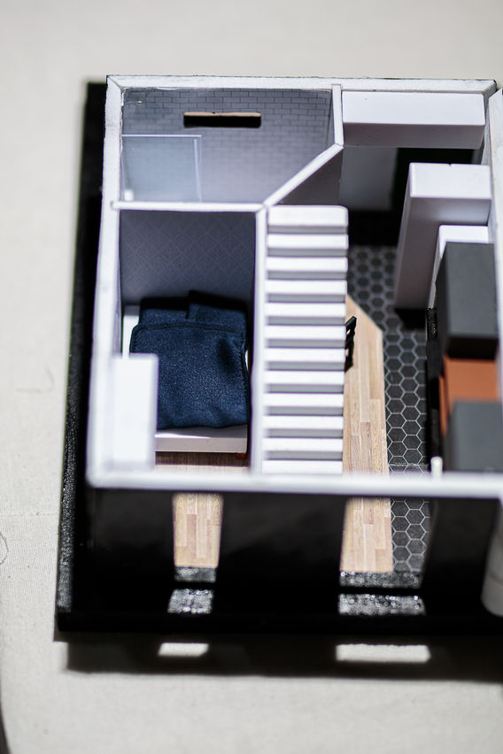 Jag valde att inte sy en kollektion för examensprojektet, utan fokusera på inredning istället. På senare åren har jag intresserat mig väldigt mycket av så kallade “Tiny Houses” och skåpbilar ombyggda till campingskåpbilar. Med det intresset som grund valde jag att designa mitt eget tiny house på 30 kvadratmeter.
